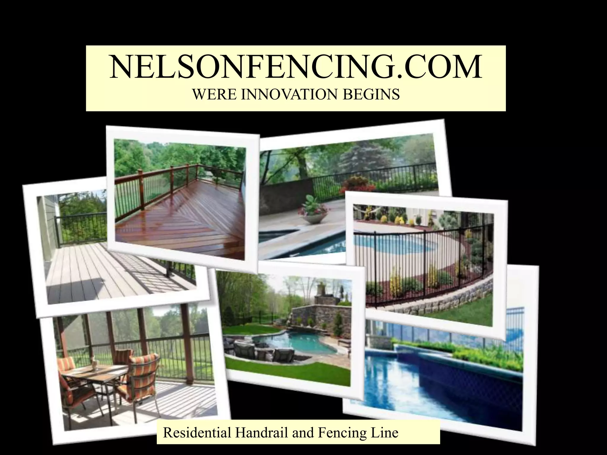 This document provides installation instructions for a residential handrail and fencing line in 5 steps: 1) Align and set posts with various mounting options, 2) Attach brackets to posts, 3) Position rails into brackets and tighten screws, 4) Insert pickets which cannot be removed once properly installed, 5) Insert pickets into the top rail and tighten screws.