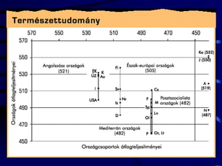 Négy országcsoport országainakátlagpontszáma 474 x 514 x 504 USA 458 L e t tország 488 x 497 D ánia 523 E gyesült K irályság 462 Or oszország 470 P ortugália 505 N o r végia 527 Í rország 479 L e n gyelország 487 Ol aszország 507 Iz land 528 Au sztrália 480 M agyarország 493 Sp anyolország 516 Sv édország 529 Ú j- Z éland 492 Cs ehország 505 Fr anciaország 546 Fi nnország 534 K anada Posztszocialista országok Mediterrán országok Észak-európai országok Angolszász országok Olvasás-szövegértés
