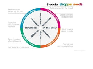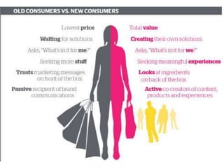 The document discusses the shift towards connected digital consumerism and smart marketing strategies, emphasizing the importance of understanding consumer behavior and personalizing marketing efforts. It highlights the effectiveness of inbound marketing, social media engagement, and the need for businesses to adapt to a more interactive and community-driven shopping experience. Key recommendations include utilizing social proof, personalized offers, and optimizing customer interactions to enhance loyalty and increase revenue.