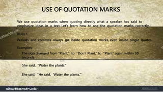 This document provides 7 rules for using quotation marks correctly: