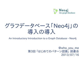 Neo4jで始めるグラフDB入門 - LT Thursday More from Hisao Soyama