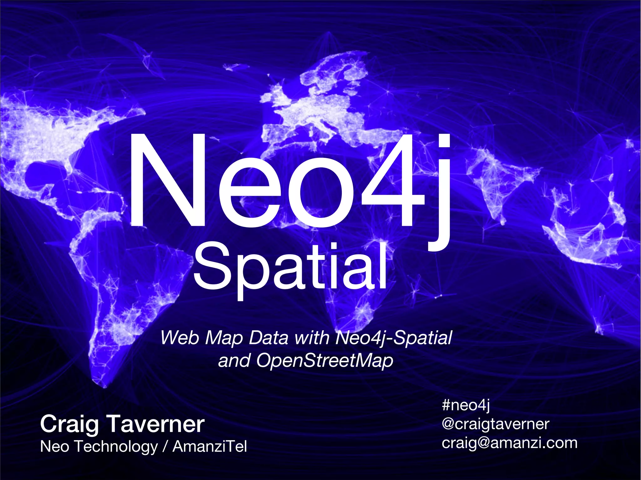This document discusses using Neo4j-Spatial and OpenStreetMap to work with web map data. It provides an overview of Neo4j-Spatial's capabilities for spatial data including importing, querying, and exporting OpenStreetMap data. Examples are given of using Neo4j-Spatial to find locations near other points, perform routing queries on OSM data, and analyze contributions of individual OSM users.