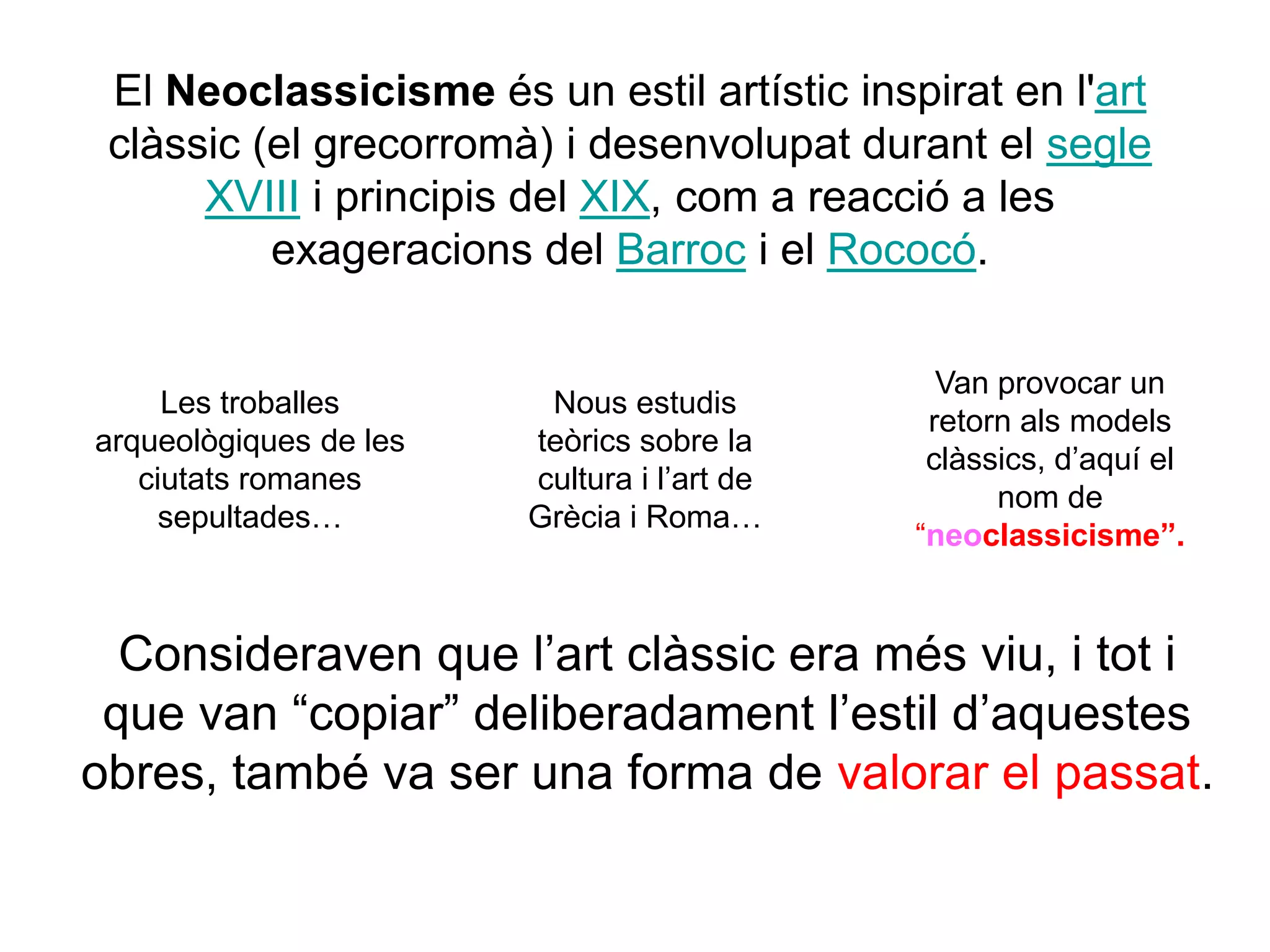 Neoclassicisme 1. El Neoclassicisme Ă©s un estil artĂstic inspirat en l'art