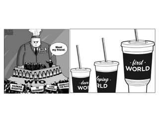 Neoliberalism refers to economic policies that emphasize free market capitalism, deregulation, and reduction in government spending. The document discusses how neoliberal policies have been implemented globally since the 1970s, often at the behest of international financial institutions. It argues that neoliberalization has led to increasing inequality and poverty while benefiting wealthy elites. In the Philippines specifically, trade liberalization under the WTO/IMF has devastated the agricultural and industrial sectors and made social services less accessible by increasing costs and privatizing public services.
