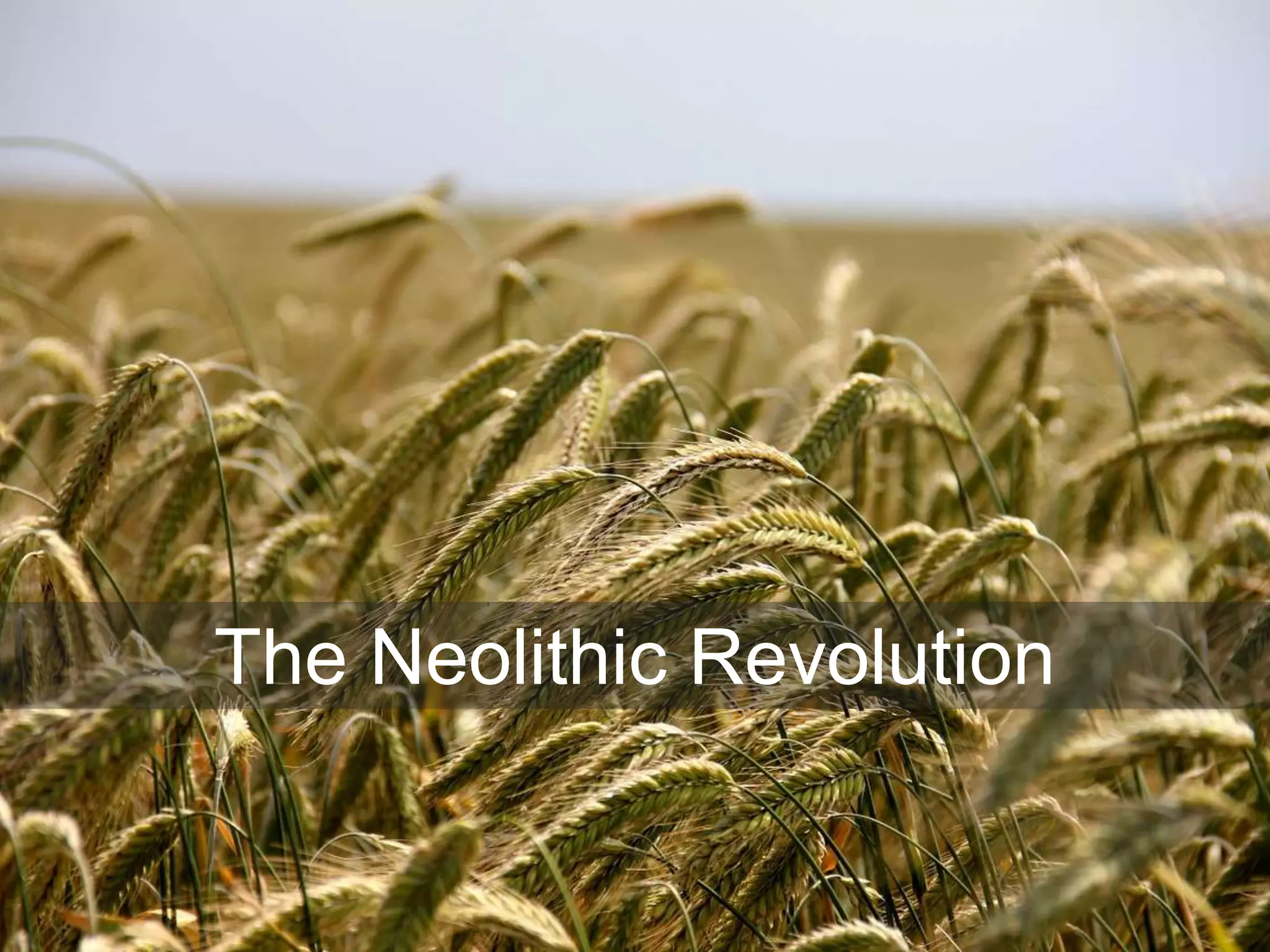 The Neolithic Revolution refers to the transition from hunting and gathering to farming and domestication of animals that occurred in different regions around 10,000 years ago. This facilitated more permanent settlements like Jericho and Çatalhöyük, which featured plastered walls, shrines, and figurines. Monumental megalithic structures like Stonehenge also emerged during this period, demonstrating advanced astronomical knowledge as they were precisely aligned with solstices and equinoxes. The Neolithic Revolution marked a major shift in human societies toward agricultural lifestyles and more complex social organization.