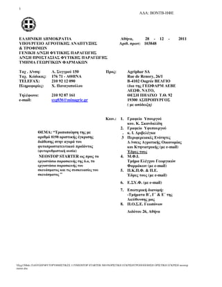 Ταχ . ∆/νση: Λ. Συγγρού 150 Προς: Agriphar SA