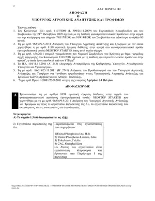 6. Τη µε αριθ. Πρωτ. 100881/23-9-2011 αίτηση της εταιρείας Agriphar SA Βελγίου