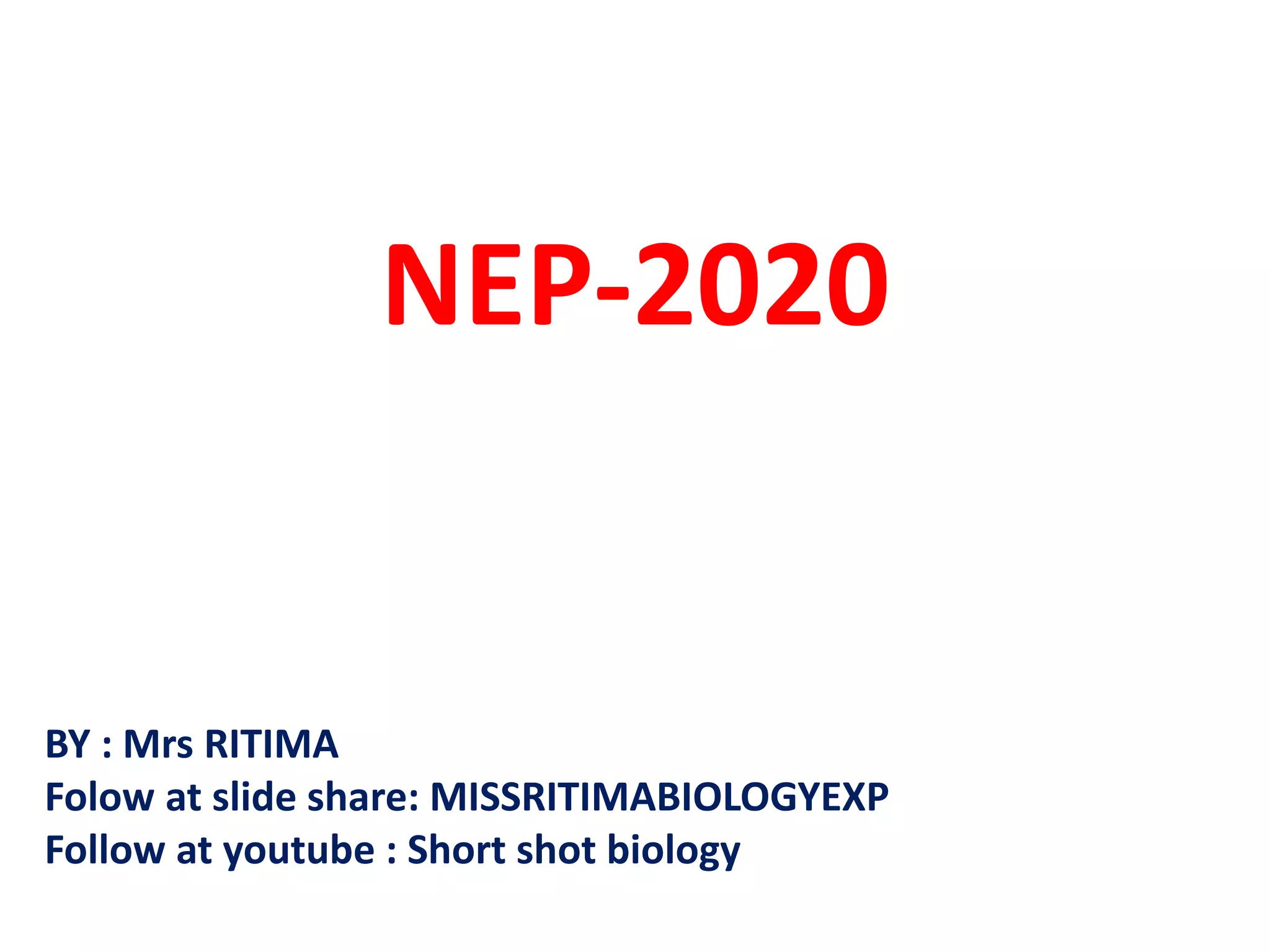 The National Education Policy 2020 aims to universalize education from pre-school to secondary level with 100% enrollment. Around 200 million out of school children will be brought into the mainstream. The Ministry of Human Resource Development has been renamed the Ministry of Education. The new school structure includes 3 years of preschool, 3 years of lower primary, 3 years of upper primary, 4 years of secondary, and 3-4 years of higher secondary/college. Students will have multiple entry and exit options between vocational and academic streams. National Curricular and Pedagogical Framework will be developed for early childhood education up to age 8. National standards for teachers will be developed by 2022.