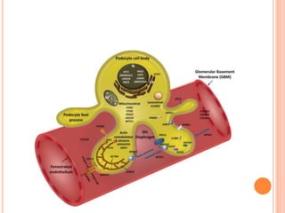 - The podocyte plays a crucial role in the glomerular filtration barrier and podocyte injury can lead to nephrotic syndrome.