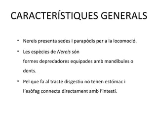 • Nereispresenta sedes i parapòdis per a la locomoció.