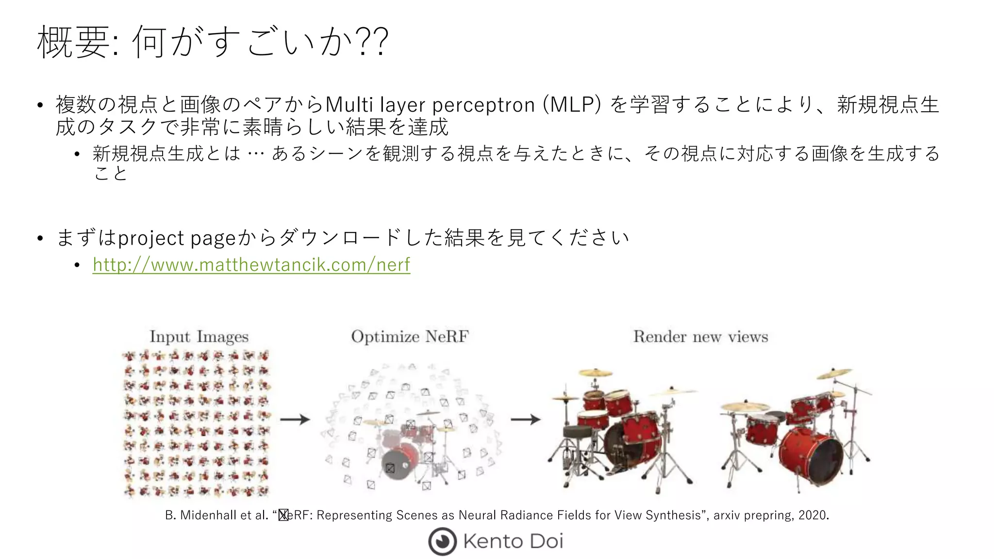 • B. Midenhallet al.: NeRF: Representing Scenes as Neural Radiance Fields for View Synthesis.