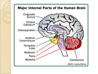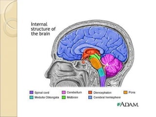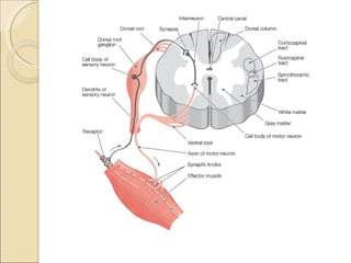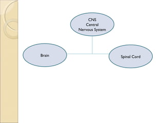The document summarizes the main components and functions of the human nervous system. It describes the central nervous system including the brain and spinal cord. It also describes the peripheral nervous system including cranial nerves and spinal nerves. Finally, it discusses the different types of neurons, their functions, and how they transmit signals in the body.