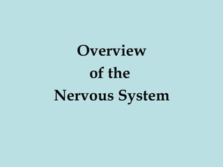 1) It describes the two major divisions of the nervous system - the central nervous system (CNS) and peripheral nervous system (PNS).