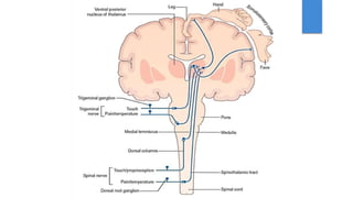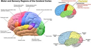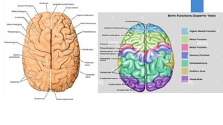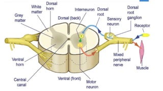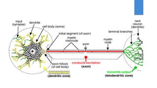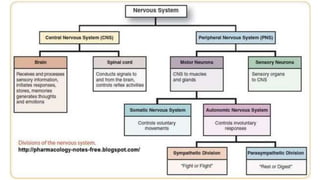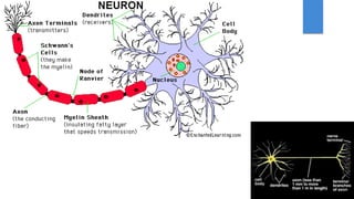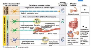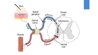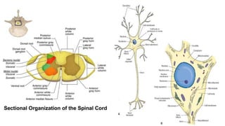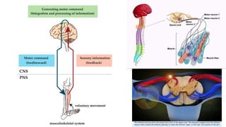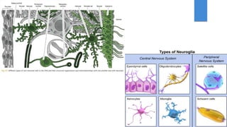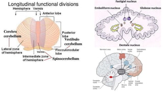 The document provides a comprehensive overview of the nervous system, detailing its structure, functions, and components, including the central and peripheral systems. It describes the different types of neurons, their classifications, cellular components, and functional aspects, such as neurotransmitters and synapses. Furthermore, it covers the brain's anatomical regions and roles, particularly highlighting the cerebellum and its subdivisions.
