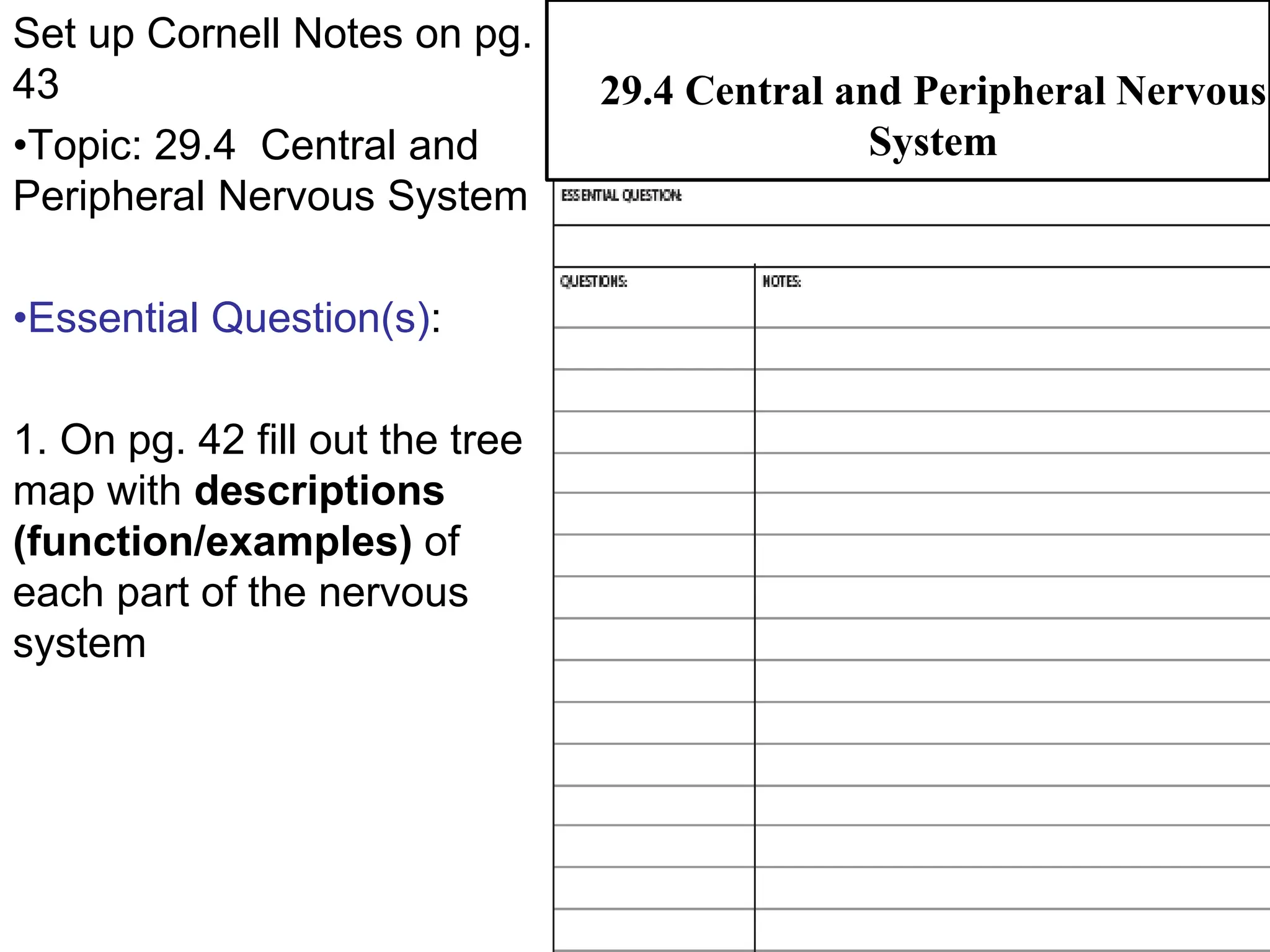 The document outlines the functions and components of the central and peripheral nervous systems, highlighting the roles of sensory neurons, interneurons, and motor neurons in processing and transmitting signals. It describes how the central nervous system (CNS) processes information while the peripheral nervous system (PNS) connects the CNS to muscles and organs, maintaining homeostasis. Additionally, it explains the reflex arc as a simple pathway for automatic responses that do not involve the brain.