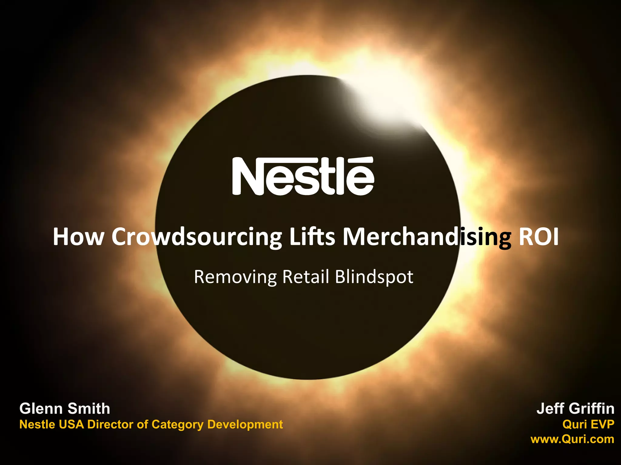 The document discusses the challenges faced by retailers in merchandizing and execution performance due to a lack of visibility into store operations. It highlights the benefits of using crowdsourced data and agile methodologies to improve promotional execution, reduce out-of-stocks, and enhance return on investment (ROI). Case studies, particularly for Coffee-mate, demonstrate how timely analytics can lead to quicker corrections in execution and increased sales.