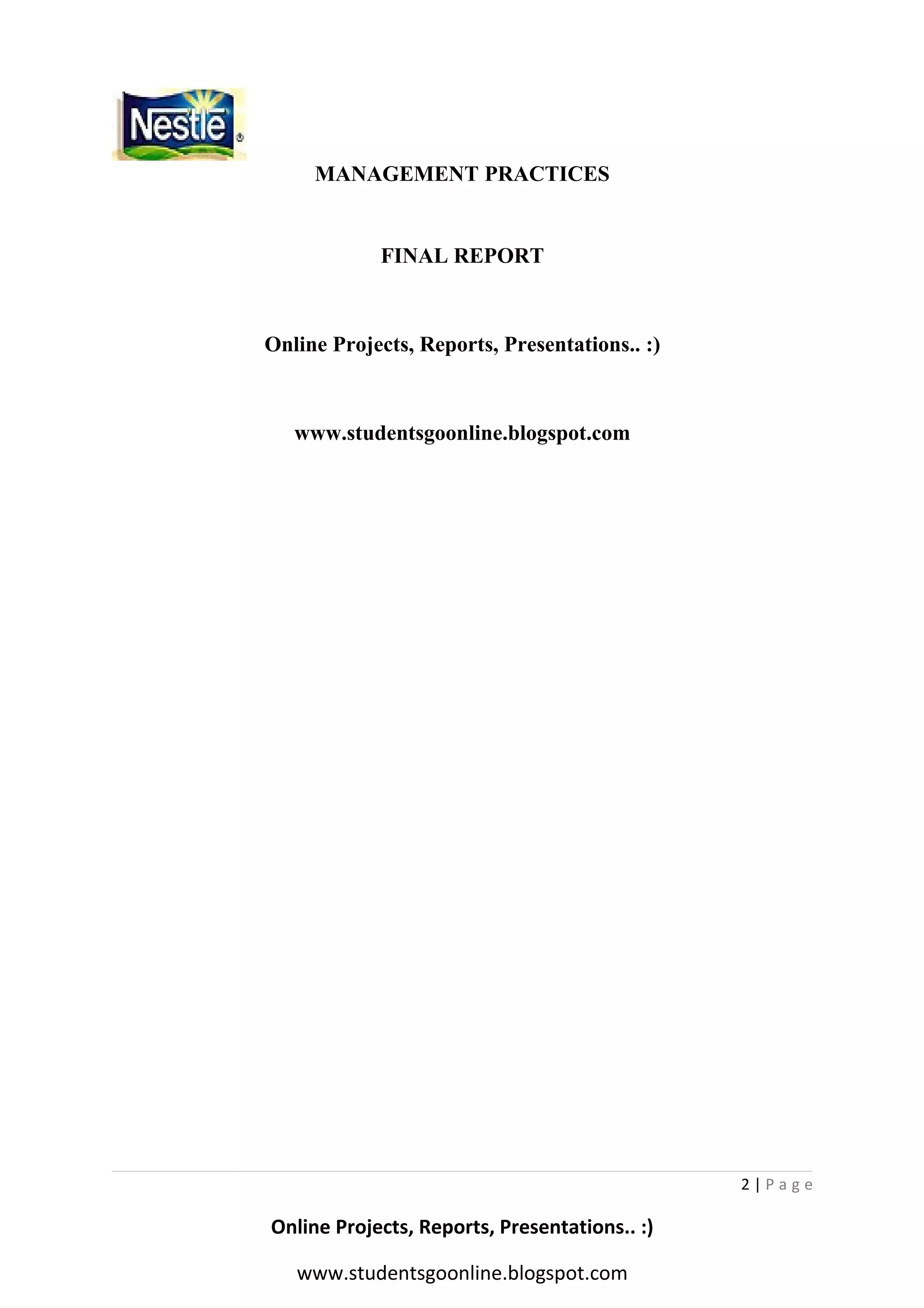 Nestle is a global food and beverage company that has been operating for over 130 years. It began operations in Pakistan in 1988 by acquiring a dairy company. Nestle manufactures and sells dairy products, beverages, baby food, breakfast cereals and other foods in Pakistan. It aims to provide high quality, nutritious products to consumers across various age groups and socioeconomic statuses. Nestle has manufacturing plants in several major Pakistani cities and employs over 2,000 people in the country. Its goal is to meet consumer needs and preferences through constant innovation and new product development.