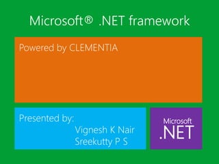 The .NET framework is a technology from Microsoft that other Microsoft technologies will depend on in the future. It provides a common language runtime, class libraries, and compiler support for multiple programming languages. The common language runtime manages memory, threads, and provides a language-independent environment. The framework class library includes a large collection of reusable classes and interfaces organized in a hierarchical structure. The .NET framework simplifies development, provides consistent programming models across languages, direct support for security, and easy application deployment and maintenance.