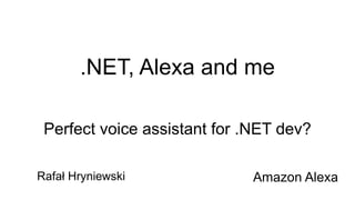 The document discusses voice assistants and the Amazon Alexa platform. It provides a history of voice recognition technologies and an overview of popular voice assistants today such as Alexa, Siri, Cortana and Google Now. It recommends Alexa as a good platform for developers due to its openness, the availability of devices, and the ability to use C# for development. The document then covers how to get started building Alexa skills, including setting up an Amazon developer account, creating skills in the Alexa skill management console, and using the Alexa.NET library to handle intents, slots and sessions in C# code deployed to AWS Lambda. It also discusses opportunities for monetizing skills and connecting skills to other systems and services.