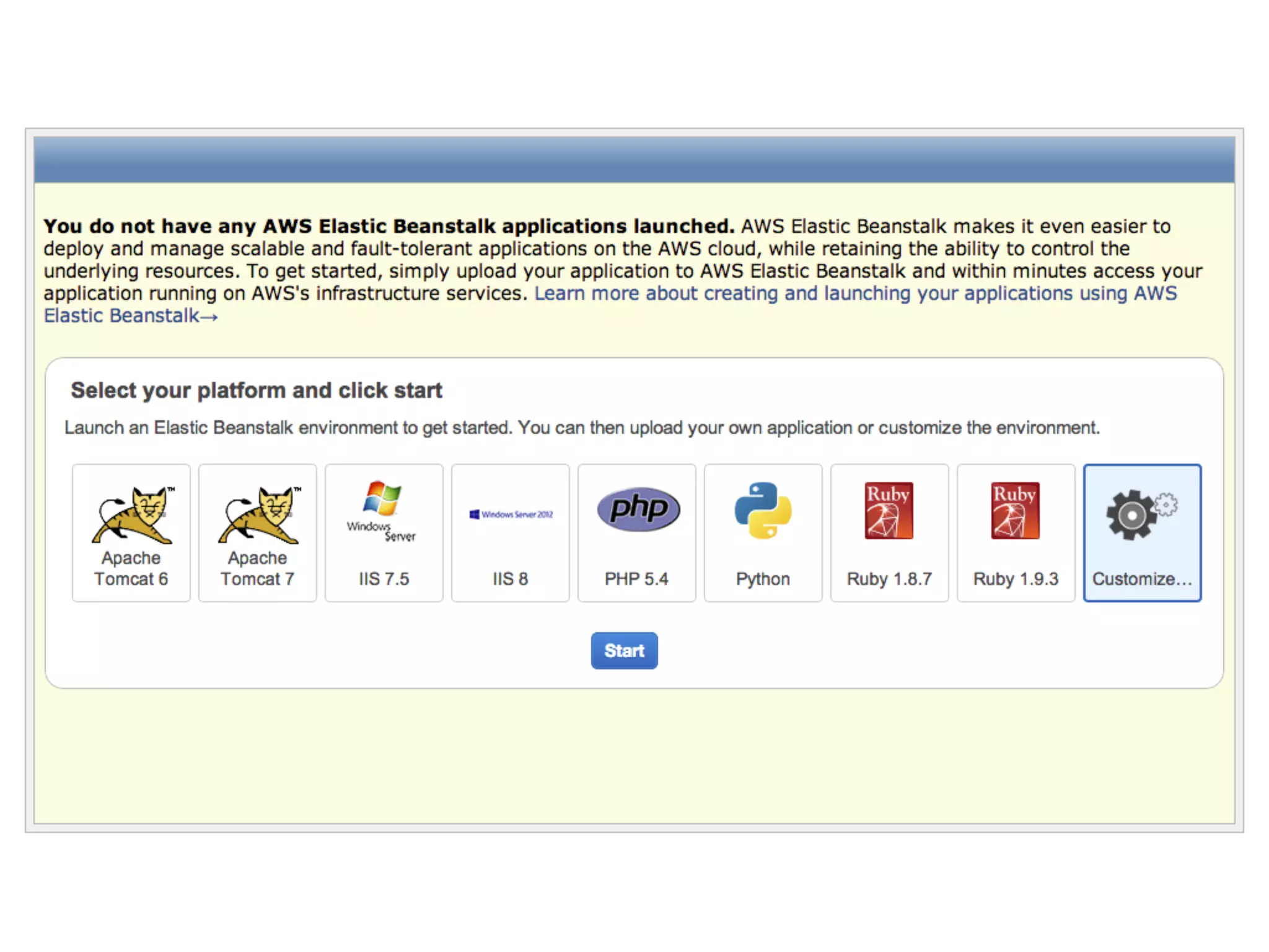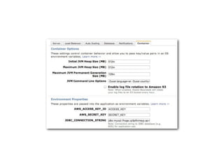 続きはWebで AWS資料より抜粋 http://www.slideshare.net/AmazonWebServicesJapan/getting-startedwithbeanstalk-20130111