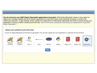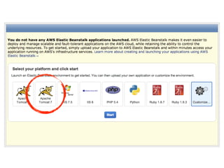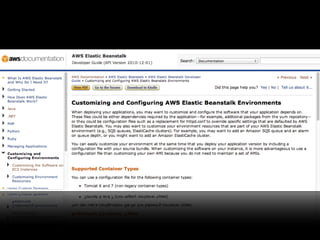 Amazon Data Services Japan http://www.slideshare.net/AmazonWebServicesJapan/ getting-startedwithbeanstalk-20130111