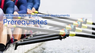 The document outlines a comprehensive CI/CD pipeline workflow involving code testing, deployment, and database management processes. It highlights various tasks such as creating PR environments, running automated system tests, and managing resource templates in Azure. Key points include monitoring PR statuses, deploying services to various environments, and ensuring successful build and deployment operations throughout the development lifecycle.