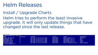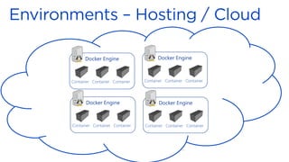 The document discusses Docker containers and Kubernetes for deploying containerized applications. It covers building Docker images from code, running containers locally and on Kubernetes, using Kubernetes concepts like pods and services to run and connect containers, and deploying containerized applications on Kubernetes clusters hosted on cloud providers using tools like Helm charts. The goal is to enable continuous deployment of applications to production environments at scale through containerization and orchestration with Kubernetes.