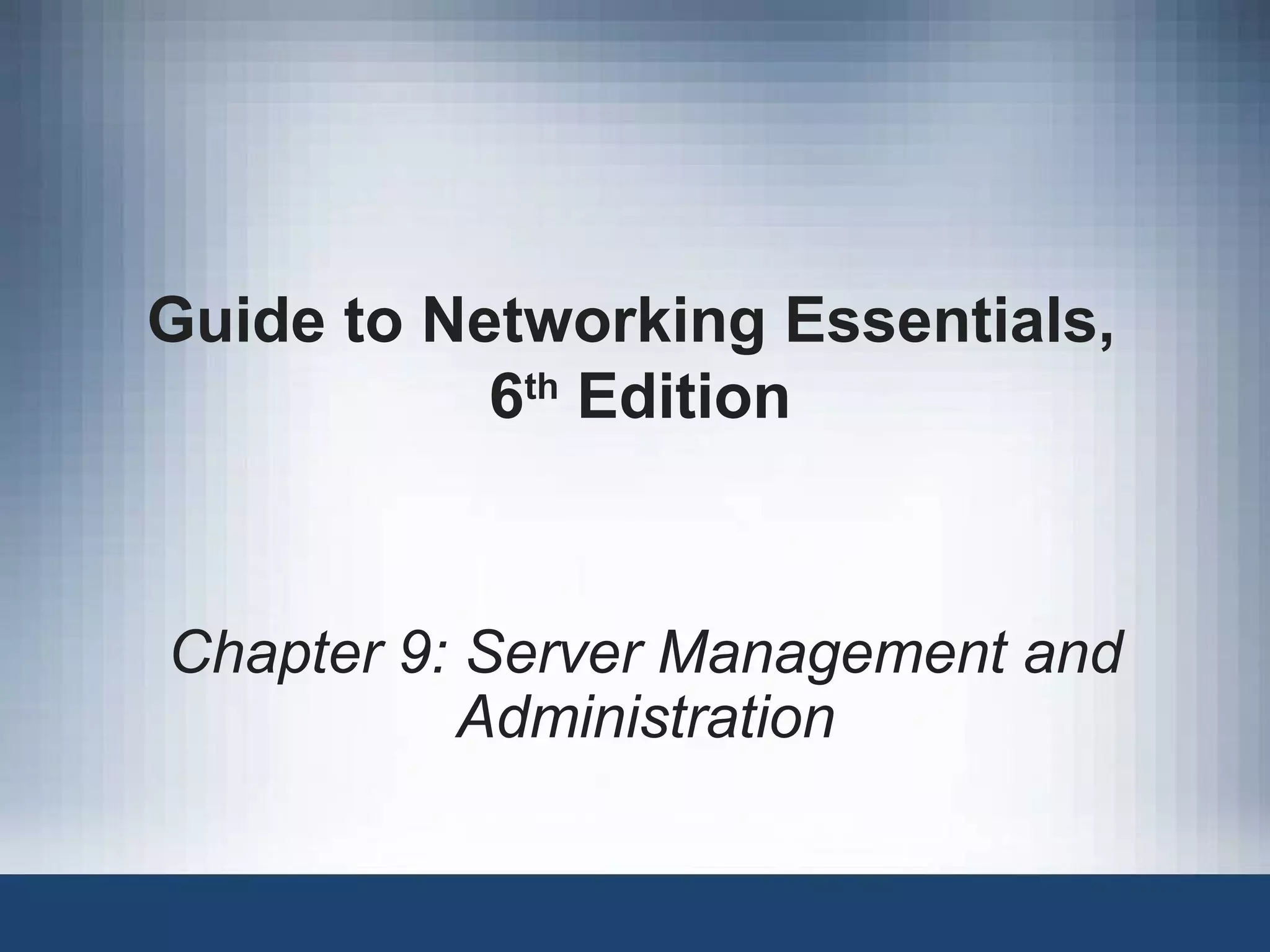 This document provides an overview of server management and administration topics, including: