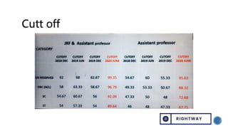 The National Eligibility Test (NET) is an exam conducted by the National Testing Agency (NTA) to determine eligibility for college and university lectureships and for the award of Junior Research Fellowships (JRFs). Candidates who pass the NET exam and obtain over 55% marks in their master's degree are eligible for a JRF, which provides a monthly stipend of Rs. 31,000 for the first two years and Rs. 35,000 as a Senior Research Fellow. To prepare for the NET/JRF exams, candidates should focus on internal preparation like confidence and passion, as well as external preparation such as understanding the syllabus, making a study plan and schedule, and practicing past papers.
