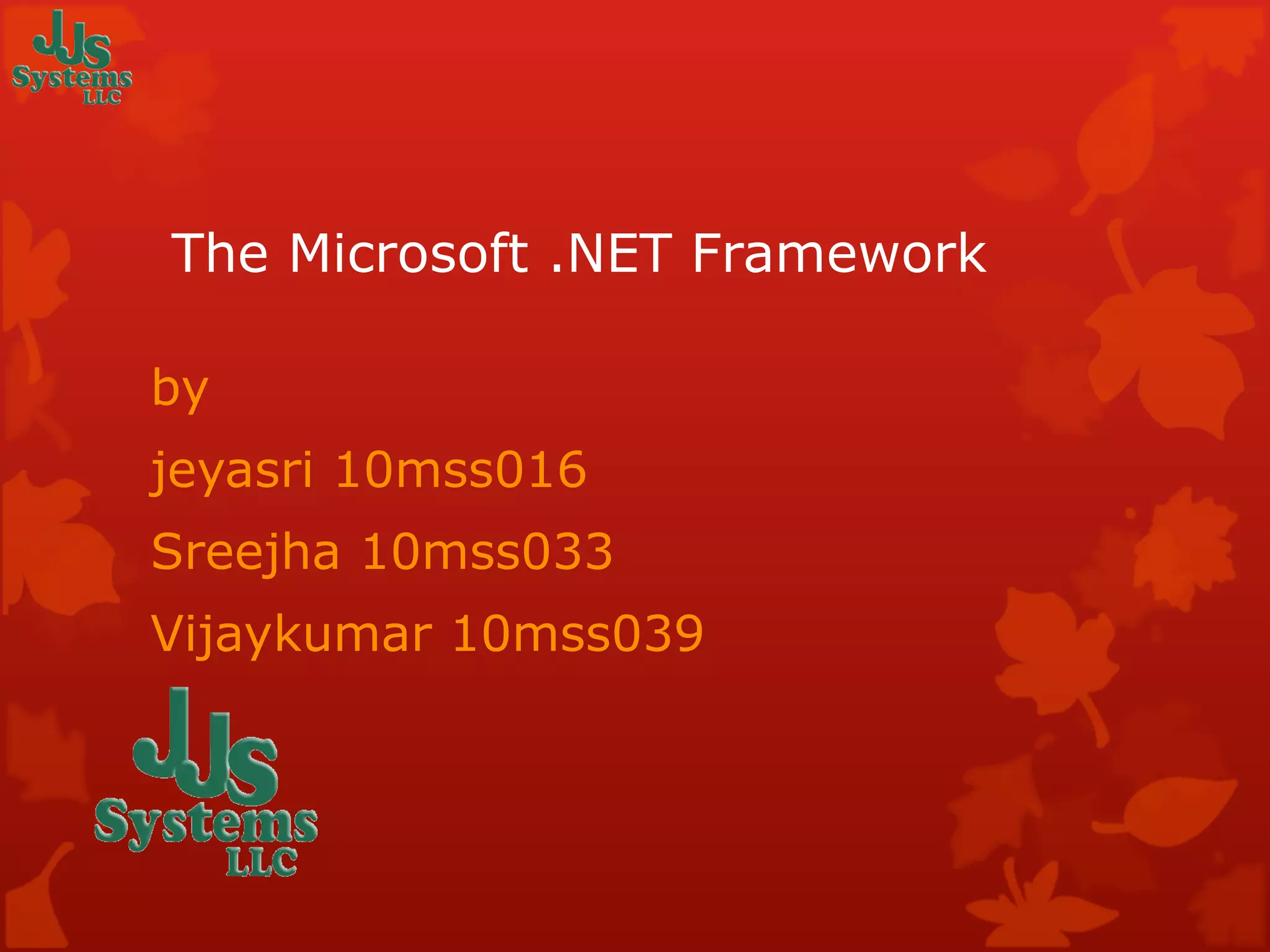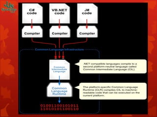 The .NET Framework is Microsoft's software technology that provides extensive libraries and tools to simplify development and deployment. It uses a Common Language Runtime (CLR) to manage running code and allow applications written in multiple languages to run on different operating systems and hardware. The .NET Framework includes services like ASP.NET, ADO.NET, and support for XML and web services to make information available anywhere.