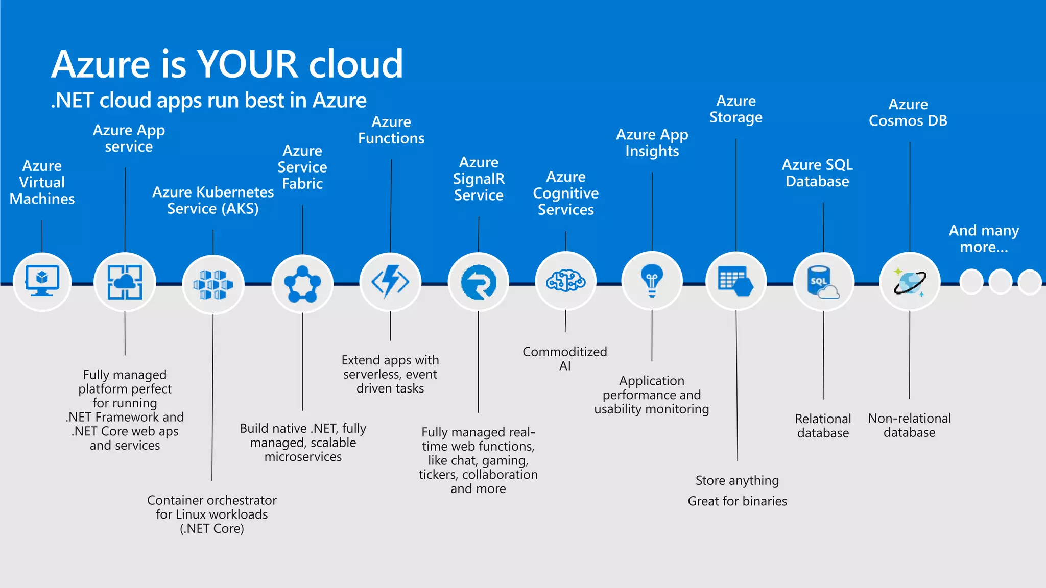 The document provides links to various resources related to Microsoft Azure, including benchmarks, upgrade guides for Visual Studio, and compatibility information for .NET Core. It serves as a consolidation of tools and information for developers working with Azure technologies. Key resources include benchmarks, blogs, and download links.