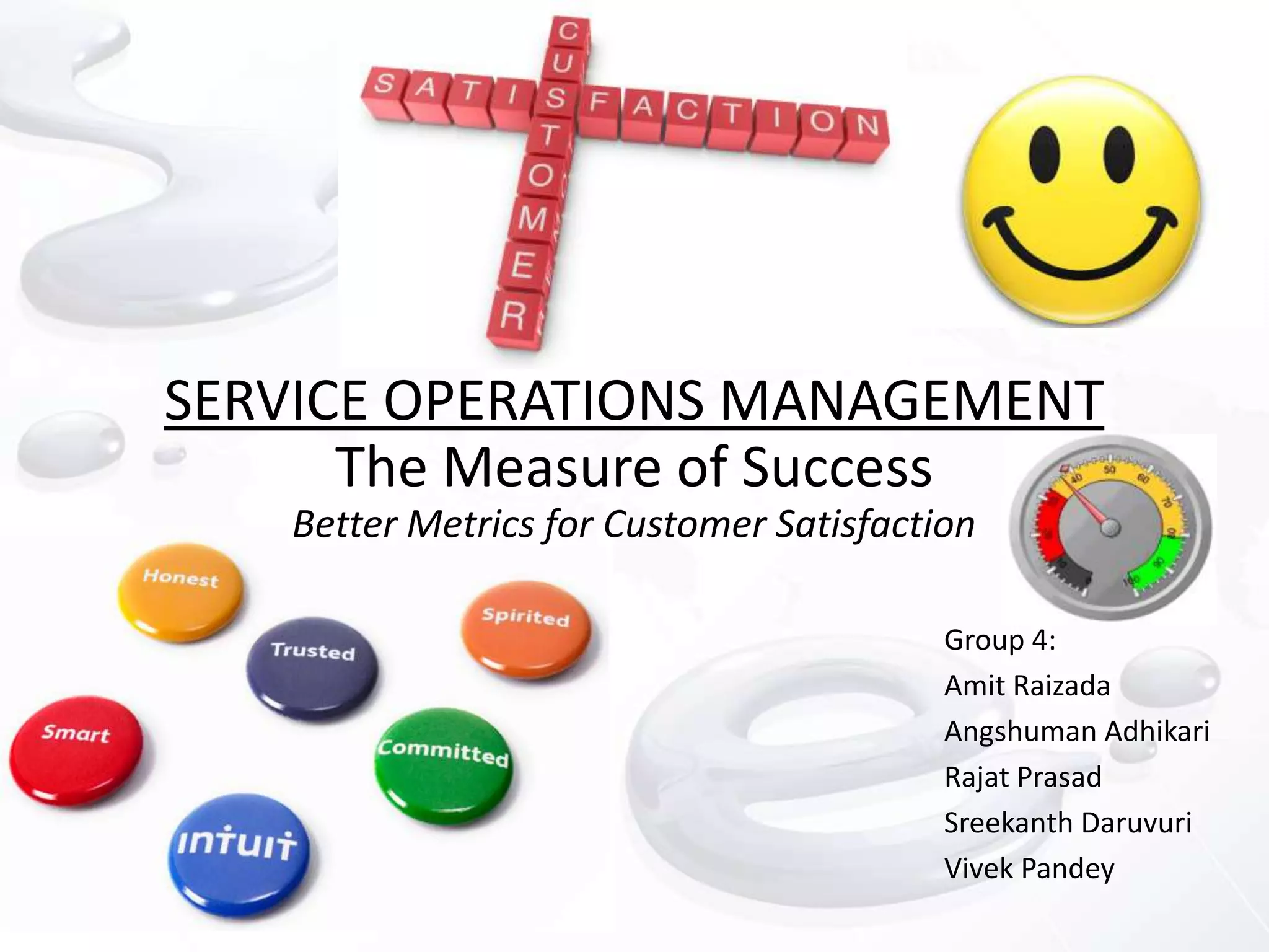 The document summarizes Intuit's journey in developing better metrics to measure customer satisfaction and loyalty through the Net Promoter Score (NPS). It discusses how Intuit shifted from using vague satisfaction statistics to the NPS, which asks customers how likely they are to recommend the company. This led Intuit to gain insights into detractors versus promoters. While the NPS helped Intuit improve customer experience and growth, some critics argue it is not the single best metric and other measures may provide better predictions of customer behaviors.