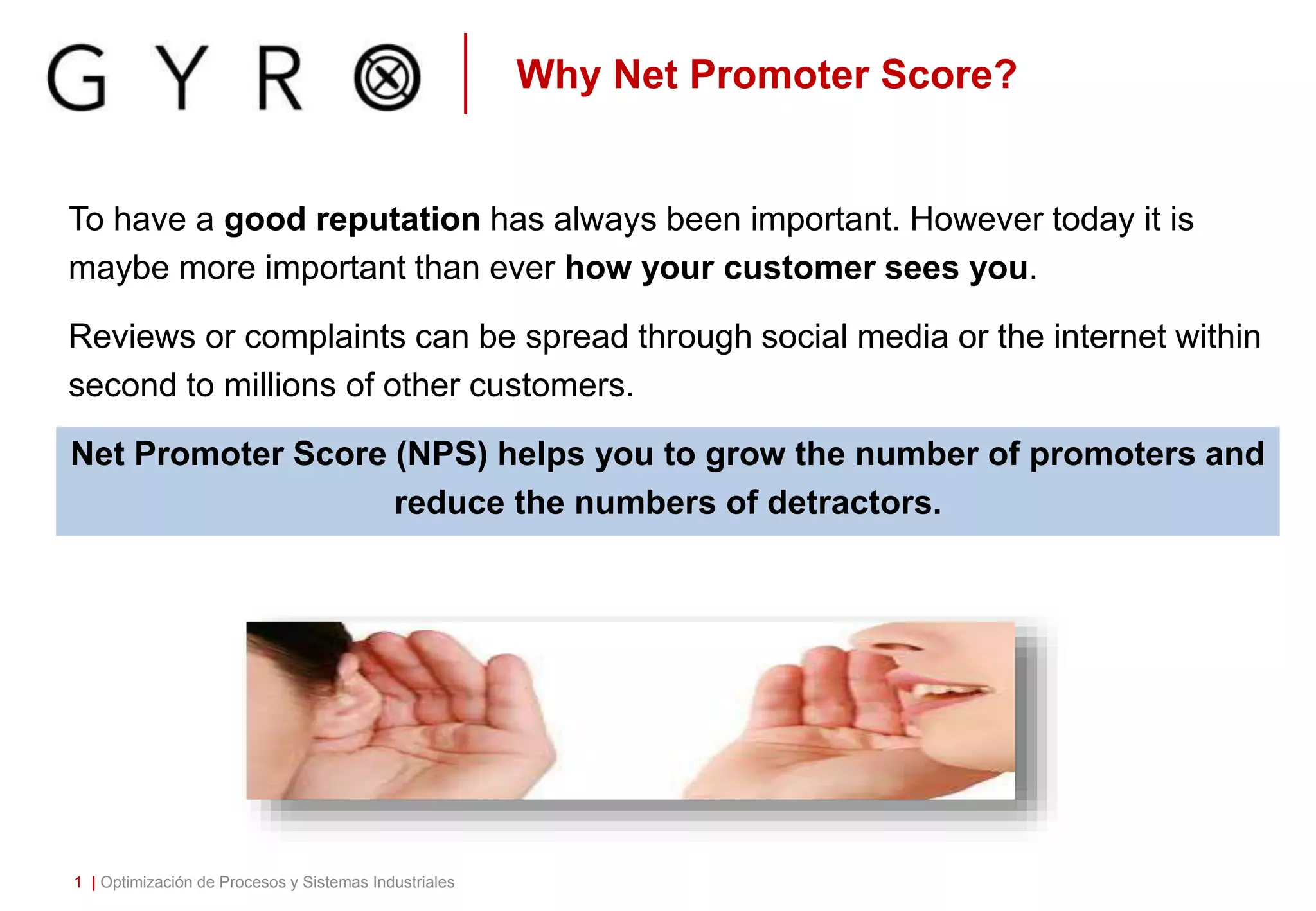 Net Promoter Score (NPS) is a metric used to gauge customer experience and loyalty. It is calculated based on responses to a single question rating customers from detractors to promoters. Having a high NPS correlates with improved reputation, customer retention, and business growth. Two case studies show how companies improved their NPS and business outcomes: a service provider increased NPS from insufficient product knowledge and communication, leading to higher customer retention. An insurance company found high NPS correlated with longer policy retention, so focused on improving loyalty.