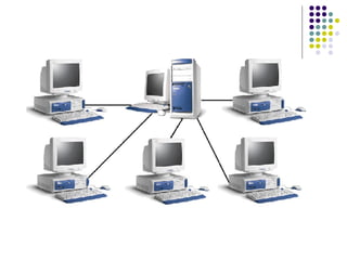 Документ описывает компьютерные сети как систему взаимосвязанных компьютеров для передачи и обработки информации, позволяя совместно использовать ресурсы, такие как память и принтеры. Сети делятся на локальные и глобальные, с различными типами соединений и топологий, включая сервер-клиент и одноранговую. В качестве методов связи упоминаются кабели и модемы, а для работы в сети используются специализированные программы.