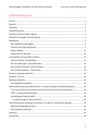 Hvilken betydning har netdating for samfundet, når singler kan målrette deres søgning? ........................... 38