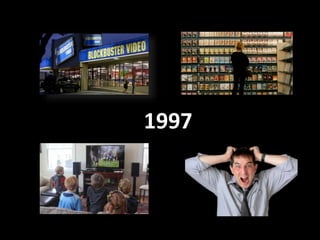 The document outlines the evolution of Netflix from a DVD rental service to a key player in online streaming and content creation, emphasizing its innovative business model and competitive strategies. It discusses challenges faced, including competition and the need for local content in international markets, along with recommendations for adapting to these challenges. Netflix's growth trajectory, revenue, and subscriber statistics highlight its significant impact on the entertainment industry.