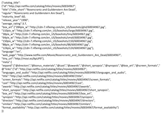 The document discusses the Netflix API and its evolution, highlighting the increase in requests to over 1 billion per day. It focuses on the infrastructure and capabilities for personalization, A/B testing, and device compatibility. Additionally, it provides details on specific movie entries, including metadata and average ratings.