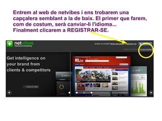 Entrem al webde netvibes i ens trobarem una capçalera semblant a la de baix. El primer que farem, com de costum, serà canviar-li l'idioma... Finalment clicarem a REGISTRAR-SE.