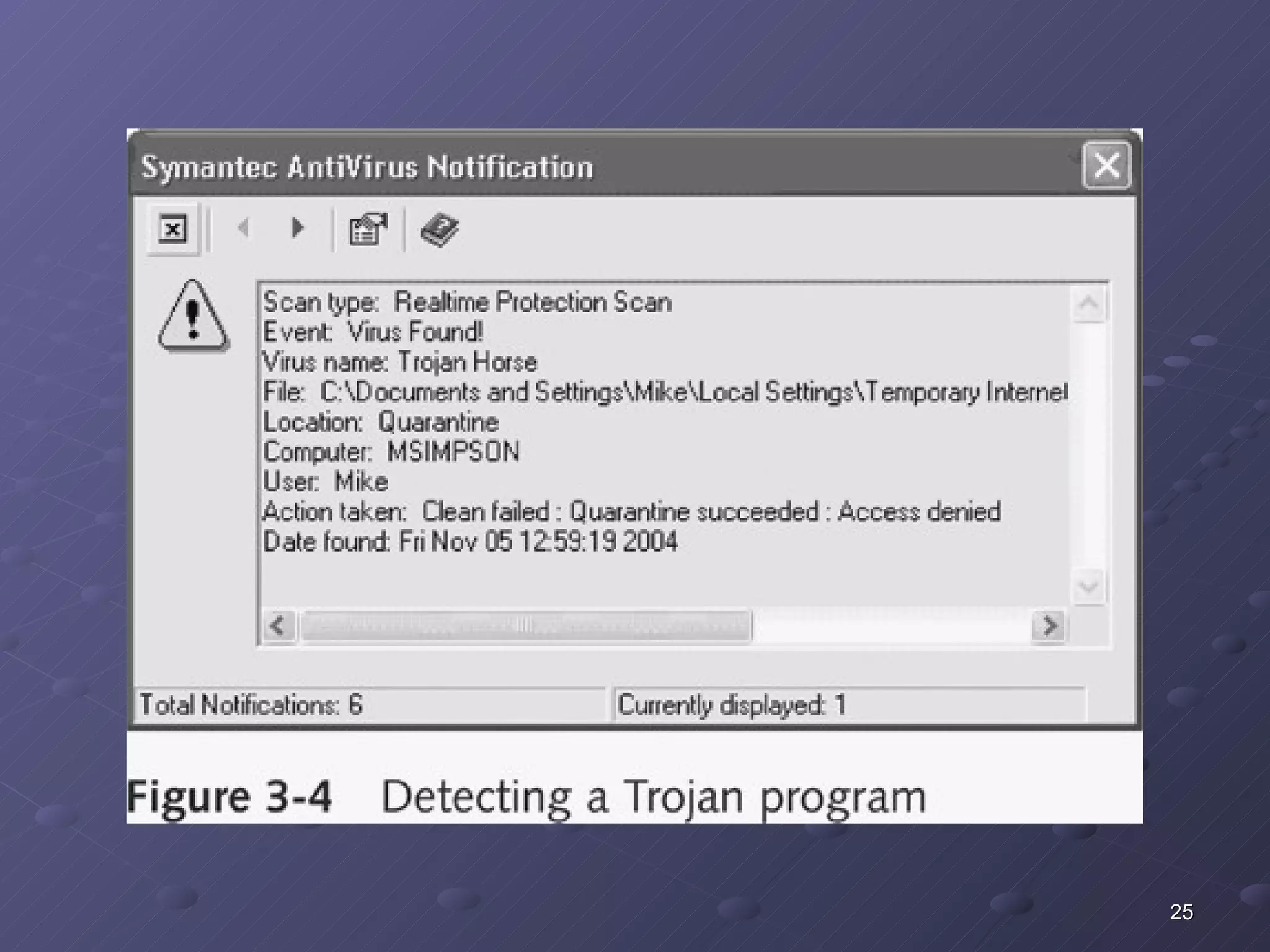 The document discusses various types of computer attacks and malware including viruses, worms, Trojans, spyware and adware. It describes how viruses can replicate and infect other systems, and the importance of anti-virus software. Network attacks like denial of service attacks and distributed denial of service attacks are covered. Methods of protecting systems through firewalls, user education, and physical security measures are also summarized.