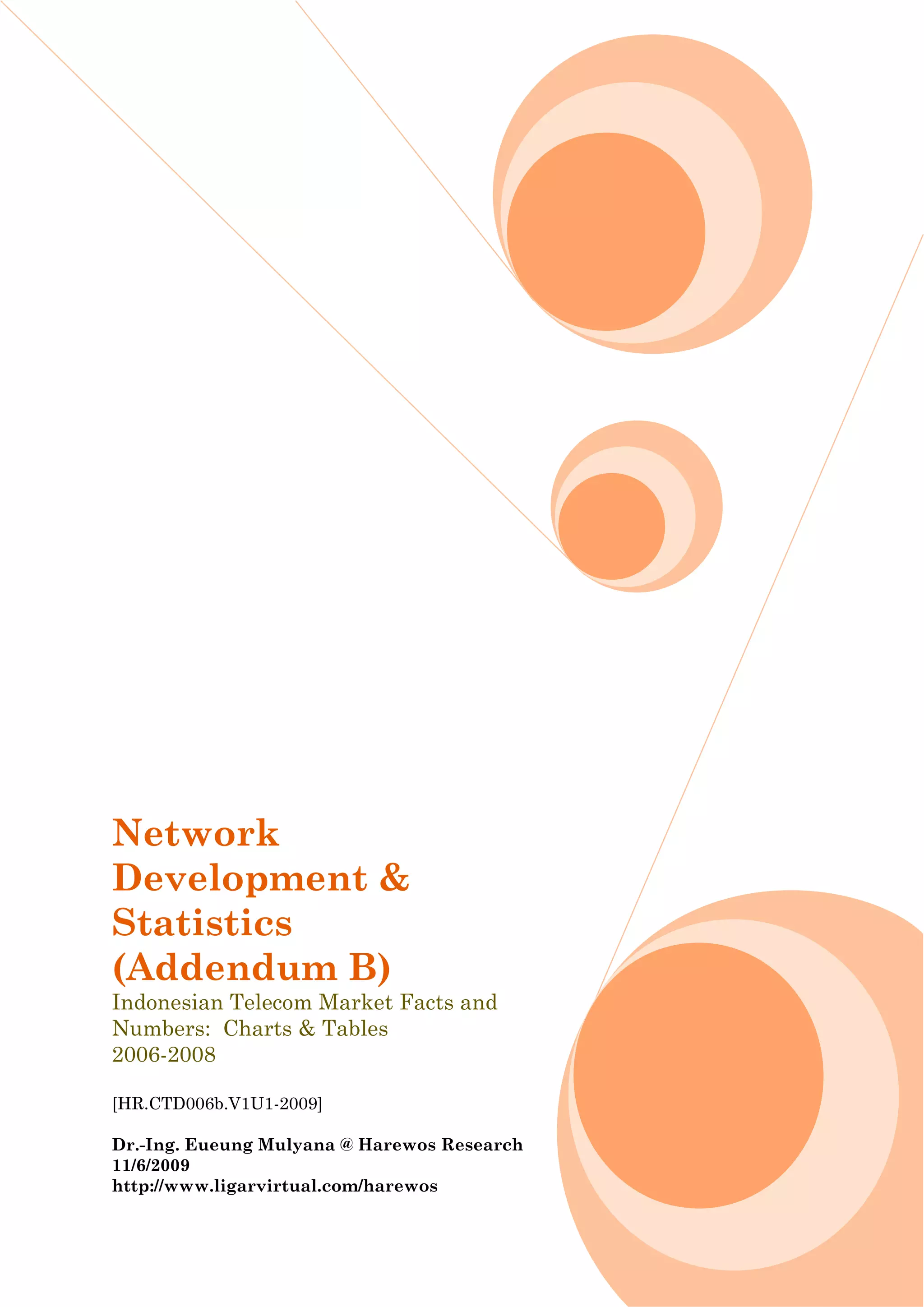 This document provides charts and tables summarizing the network capacity and utilization of various telecom operators in Indonesia from 2006 to 2008. It includes data on mobile, fixed wireless access (FWA), and fixed wireless local loop (FWL) networks. The key operators like Telkomsel, Indosat, Excelcomindo and others are shown along with their total network capacity, number of subscribers, and capacity utilization percentage each year. Tables and figures present this data individually for each technology and operator over the three-year period.