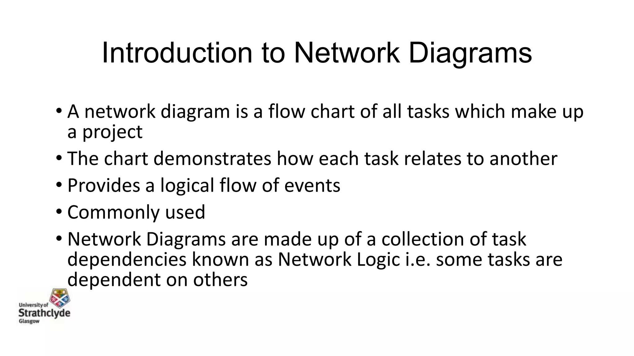 A network diagram is a flow chart that maps out all the tasks in a project and how they relate to each other. It provides a logical sequence of project events and dependencies between tasks. To create a network diagram, you determine all the activities, sequence them, estimate activity durations, and identify which tasks depend on others. The diagram is drawn by linking tasks with arrows to show dependencies from one activity to the next starting with tasks that have no predecessors. Network diagrams help visualize task relationships and identify critical paths and float.