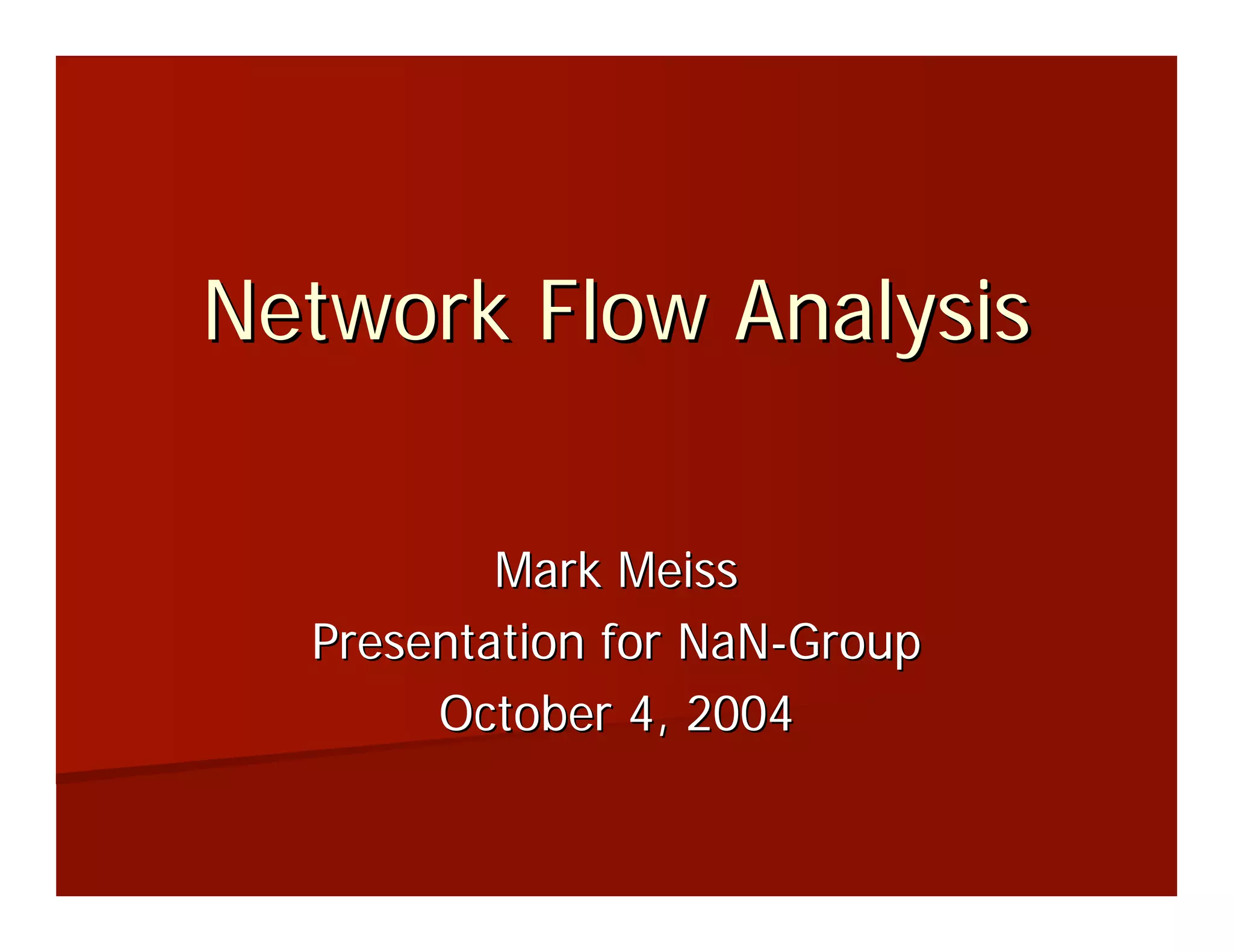 This document discusses network flow analysis of traffic data from the Internet2 Abilene network. It provides an overview of Netflow data collection and analysis techniques, along with some preliminary results. Future work is proposed to further examine the dynamics, structure, and anomalies within the large-scale network flow data.