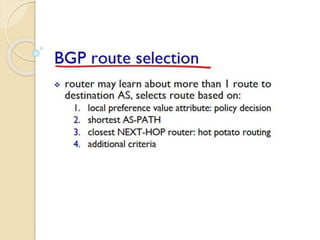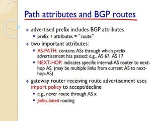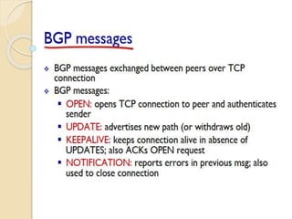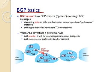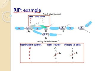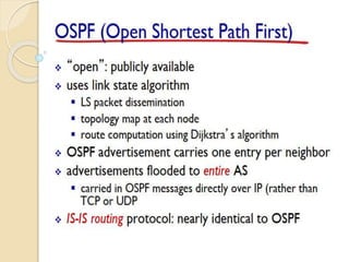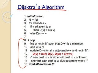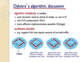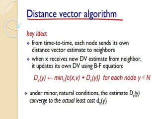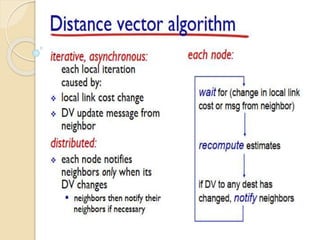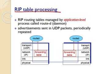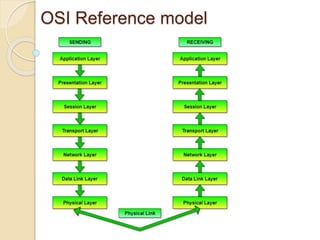 The document discusses several topics related to computer network models and protocols. It describes the OSI model which consists of seven layers and was developed by ISO to ensure worldwide data communication. It also discusses the TCP/IP model. The network layer is described in detail, covering functions like routing packets between networks and logical to physical address translation. Store-and-forward packet switching is explained. The transport layer provides services like port addressing, segmentation and reassembly, and connection-oriented and connectionless transmission. IP addressing schemes like classful and classless are summarized. Network protocols such as ARP, DHCP, ICMP, and RIP are also mentioned briefly.