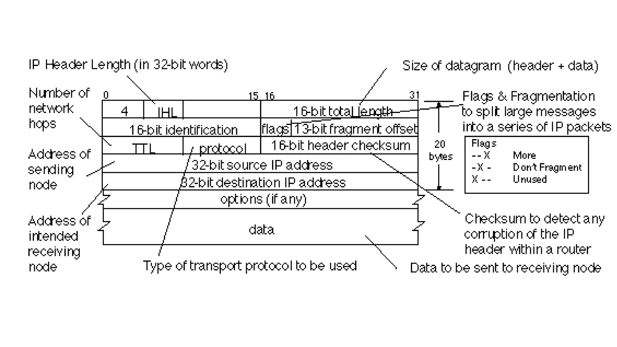 •Destination Address (the IP address of the final destination of the packet)