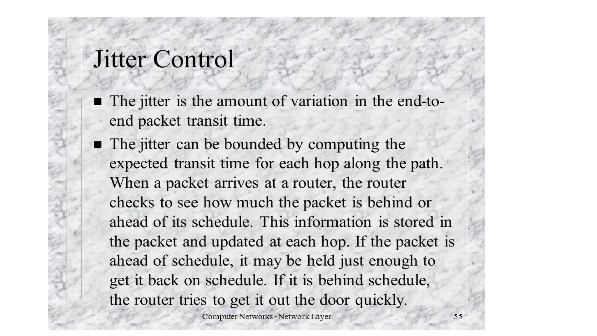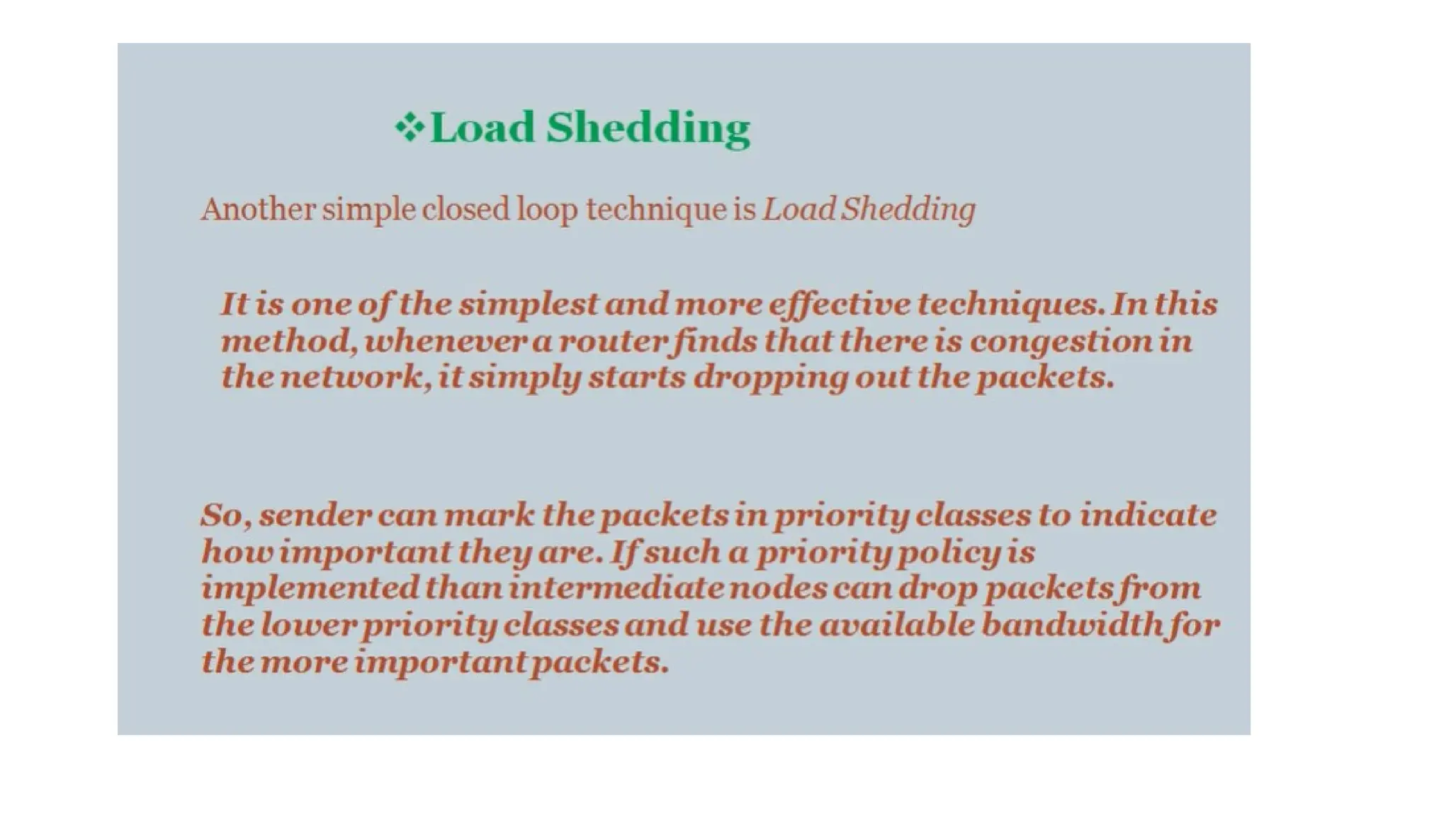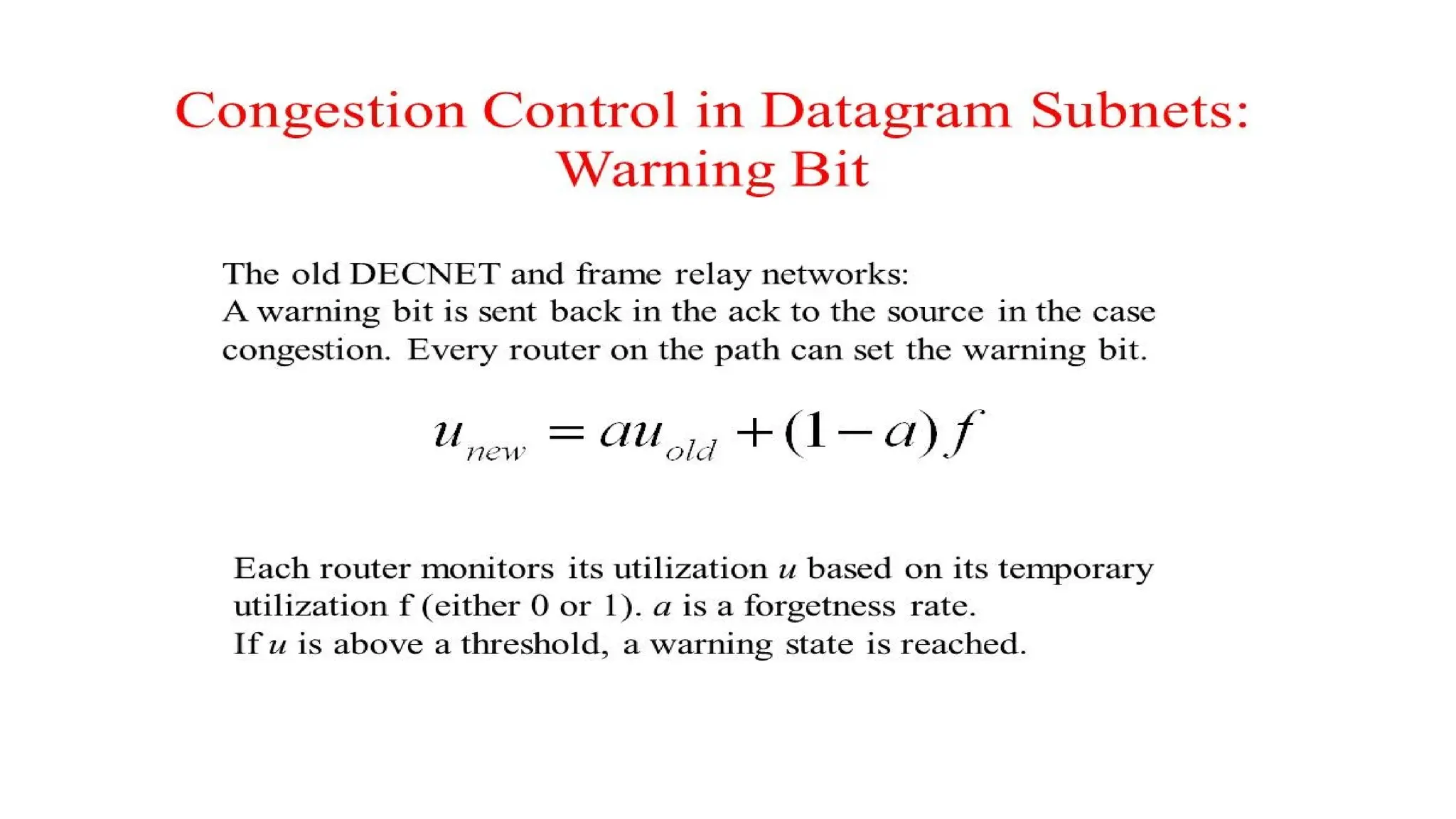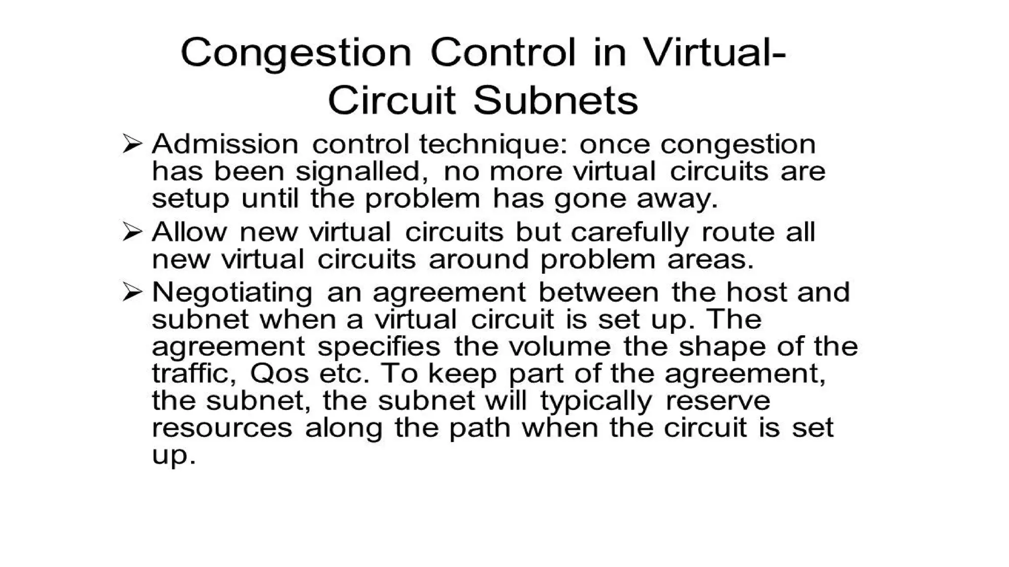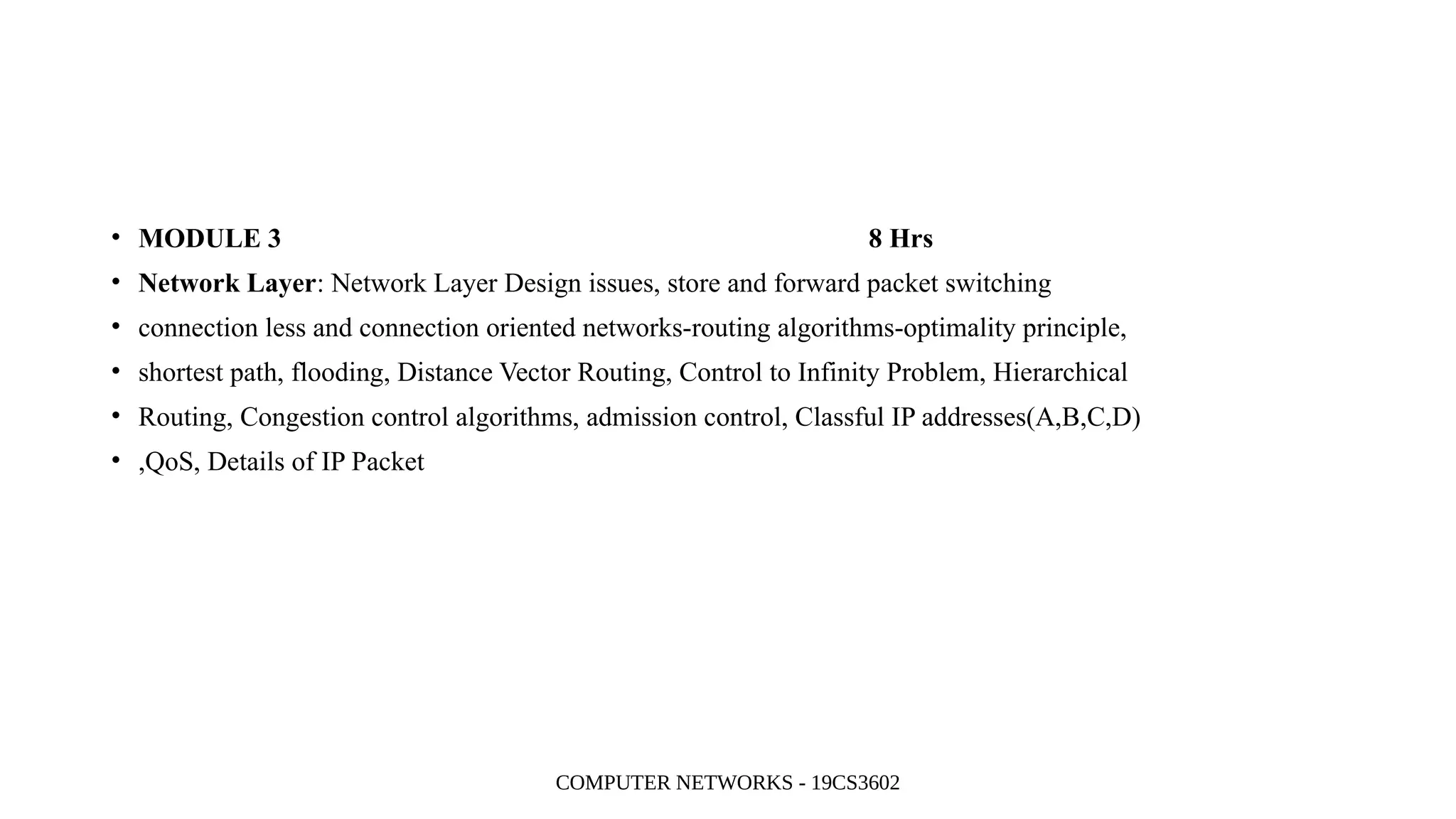 • Routing, Congestion control algorithms, admission control, Classful IP addresses(A,B,C,D)