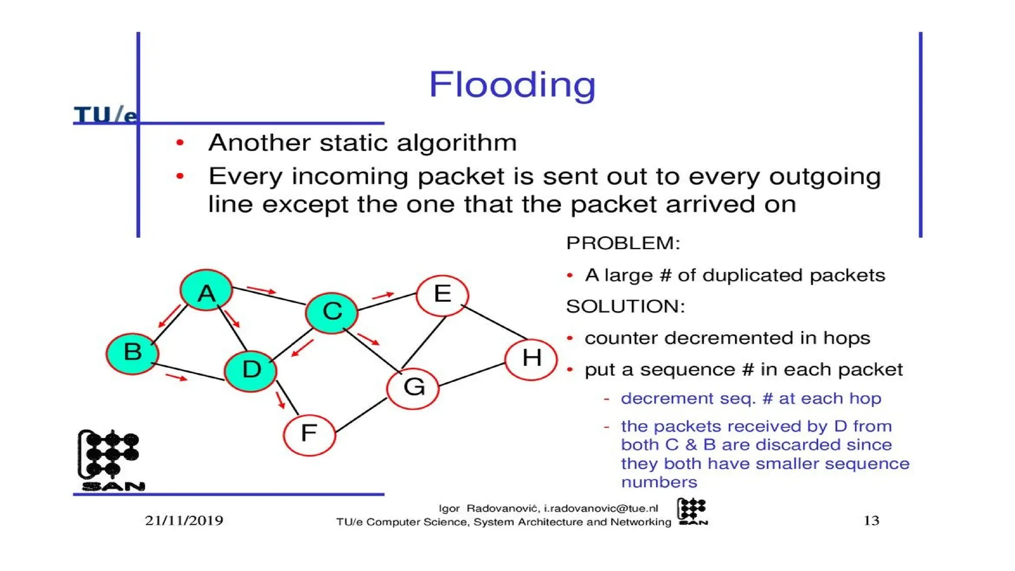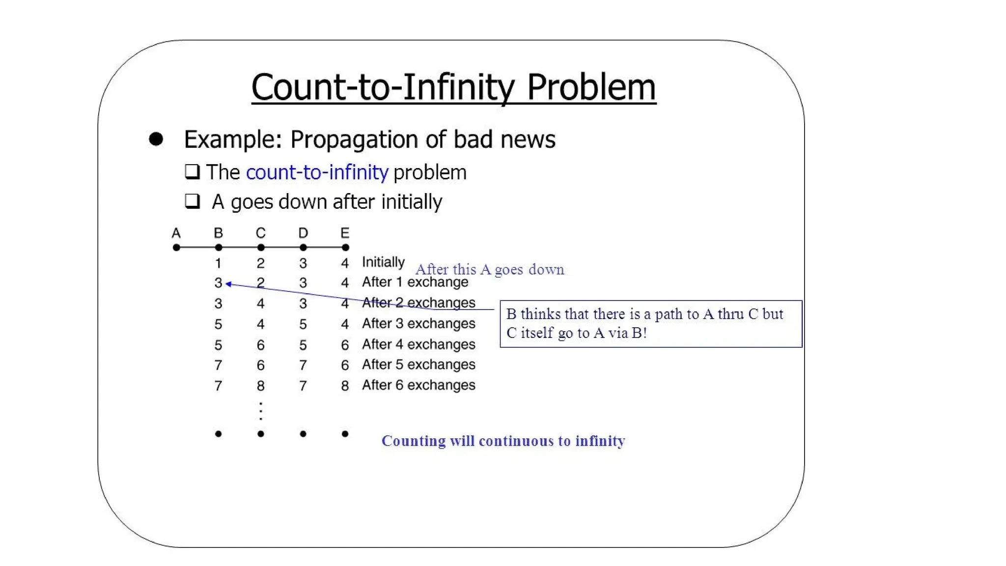 • shortest path, flooding, Distance Vector Routing, Control to Infinity Problem, Hierarchical