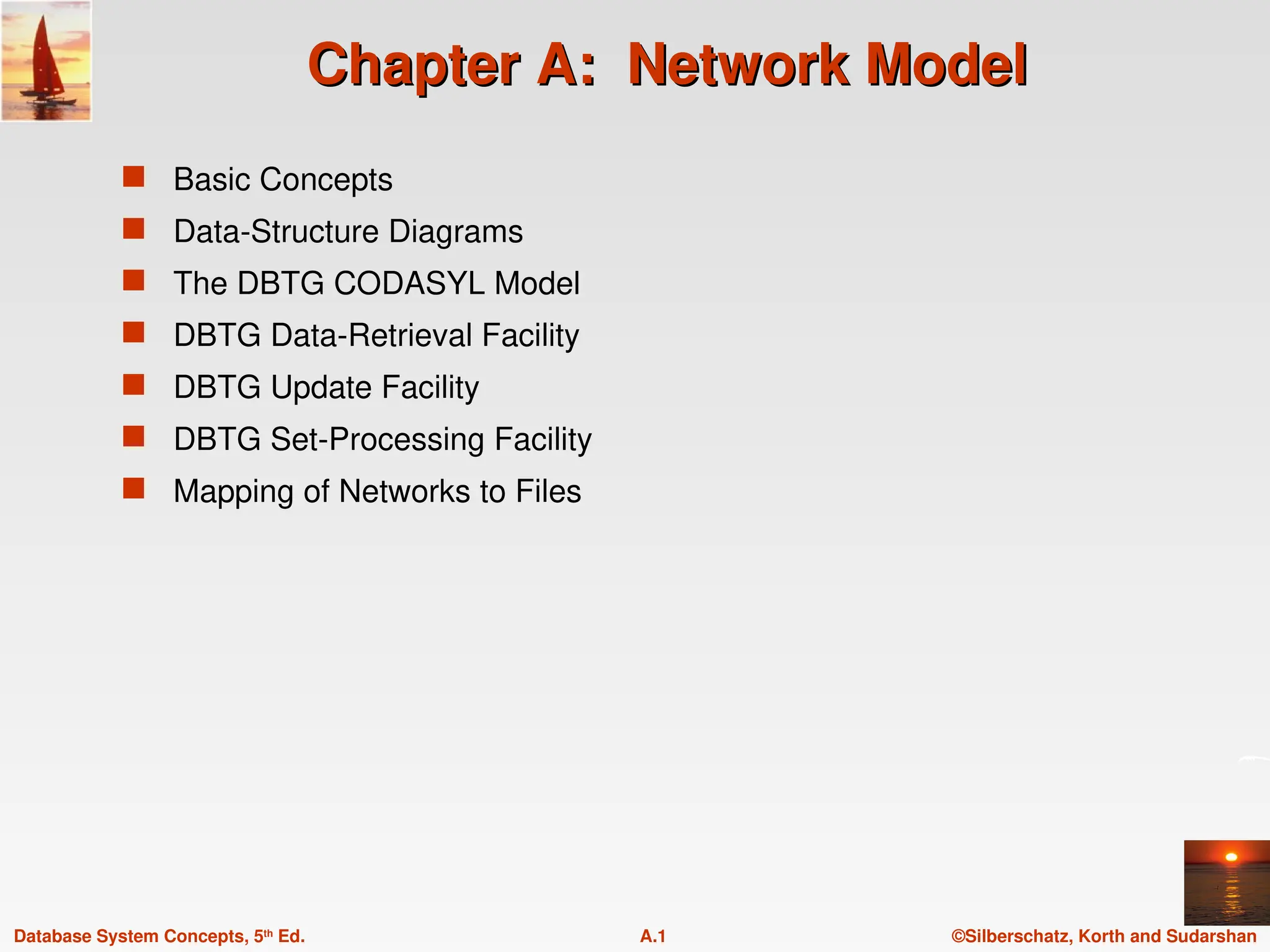 Sudarshan A.39 Database System Concepts, 5th Ed. Mapping of Networks to Files (Cont.) Mapping of Networks to Files (Cont.) Assume that the depositor link is one to many and is represented by the DBTG set depositor and this corresponding sample database. set name is depositor owner is customer member is account