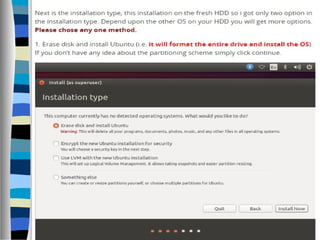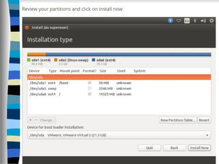This document discusses the fundamentals and evolution of operating systems (OS), detailing their roles as intermediaries between users and hardware, and categorizing types of operating systems, including real-time, single-user, and multi-user systems. It emphasizes the importance of managing resources and the various types of networks, generally classified by geography and functionality. Moreover, it covers aspects of Linux, Unix, and user management within these systems, highlighting commands for managing user accounts and groups.