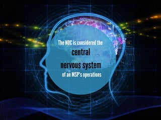 The document outlines the key responsibilities of a Network Operations Center (NOC), which include monitoring and maintaining efficient network operations, troubleshooting, performance monitoring, and providing customer support. It highlights the benefits of utilizing a NOC, such as round-the-clock monitoring, proactive issue prevention, and cost management. Swifttech Solutions offers consultation services for these NOC operations.