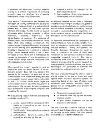This document provides background information on the history and importance of network security. It discusses how the advent of the internet led to security becoming a major concern, as the internet's architecture allowed for many security threats. The document outlines the internet and network security timeline, from the creation of the ARPANET in 1969 to the crimes of Kevin Mitnick in the 1990s that heightened awareness of information security. It also examines the differences between data security and network security, and how a layered security model corresponds to the OSI model layers.